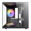 The Antec VCX20M RGB Elite Mini-Tower Gaming Chassis is purpose-built for gamers and PC enthusiasts seeking a compact yet performance-driven case. Designed to accommodate Micro-ATX and Mini-ITX motherboards, the VCX20M offers exceptional cooling and component compatibility in a space-saving footprint. With a sleek 270° panoramic glass panel design across the front and side, this chassis puts your build on full display while adding a touch of modern elegance to any setup.